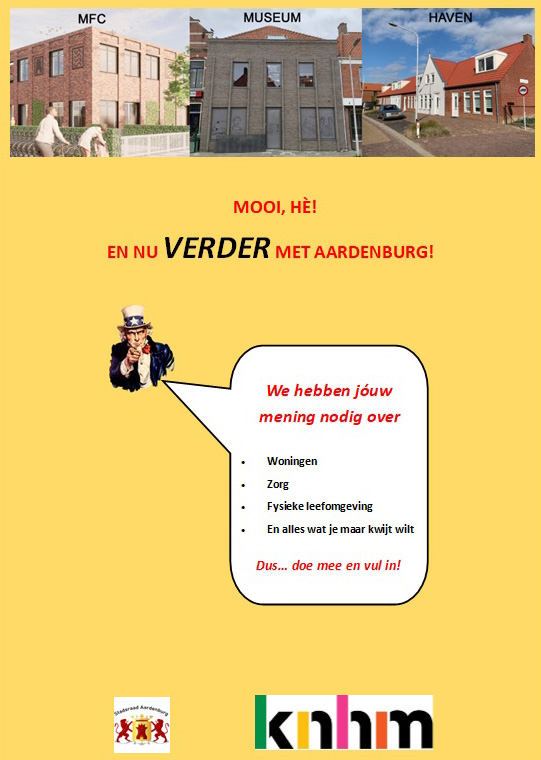 Aan de hand van deze drie thema’s presenteren we op maandag 21 november de uitslag van de enquête en willen we als inwoners van Aardenburg samen een visieplan neerleggen om te ontwikkelen. Dit gemeenschappelijke plan willen we later presenteren aan de gemeente Sluis.
