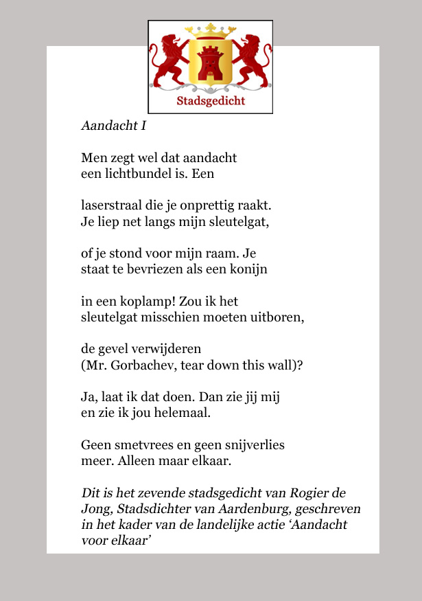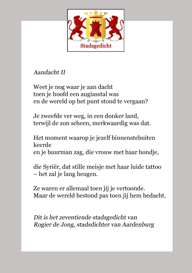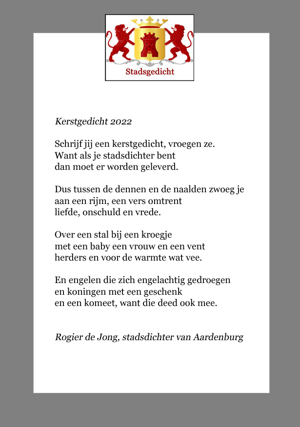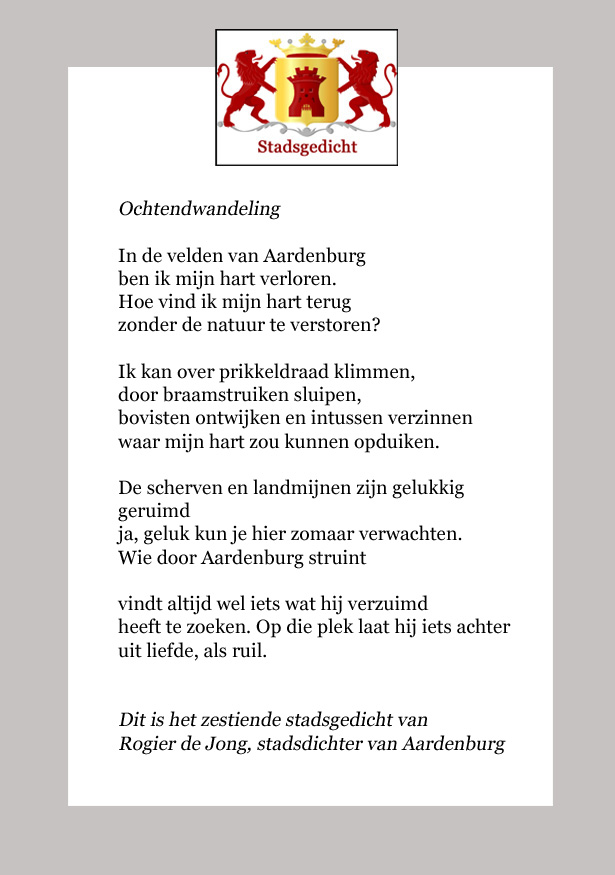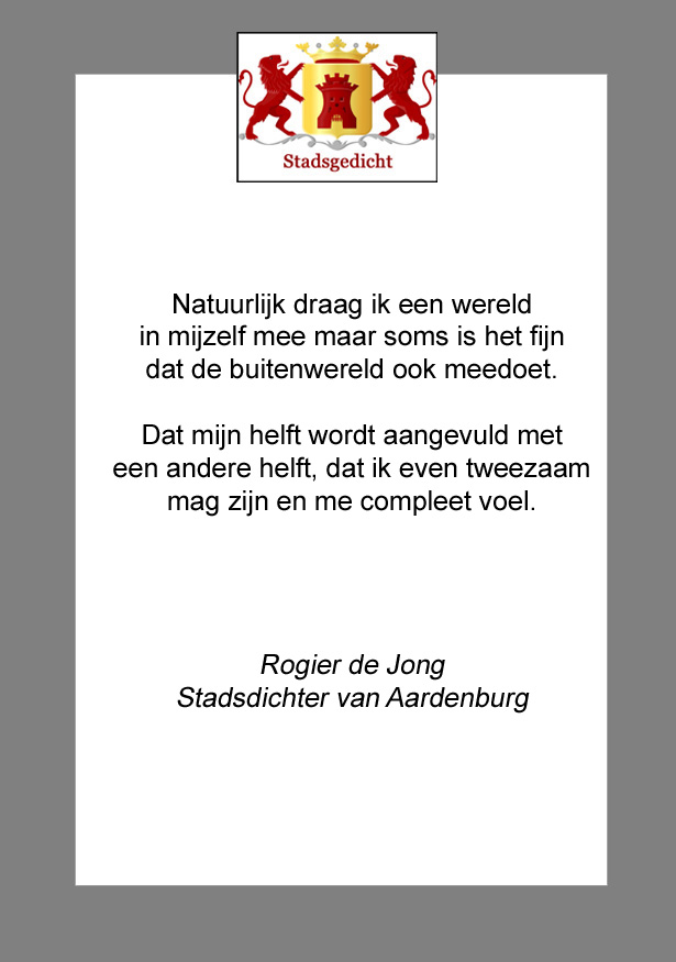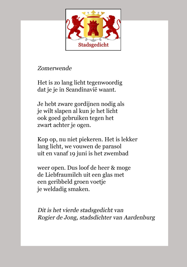 Hieronder vind je de stadsgedichten van onze oud-stadsdichter Rogier de Jong.
